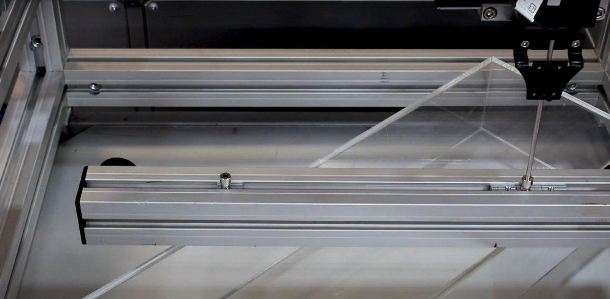 The gantry system used here is a room linear robot made by igus. The gantry system is cost-effective and offers lubricant-free gliding. This keeps the maintenance costs low.